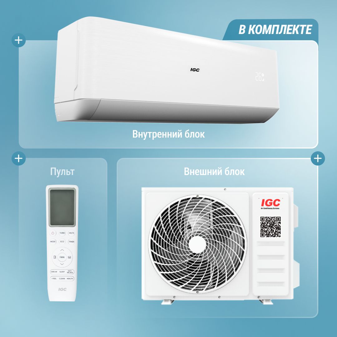 Настенная сплит-система IGC RAS/RAC-09АТ из серии T OMEGA сочетает в себе элегантный дизайн и высокую эффективность. Она предлагает ряд преимуществ, включая легкость в управлении благодаря инфракрасному пульту, множество функций и эстетичный внешний вид.